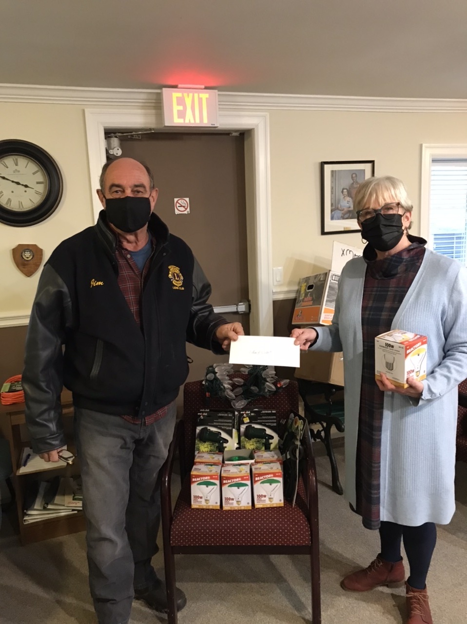 There is a supply of lights and other decorations at Westport Town Hall as they try to Give the Gift of Light in the village this year. The village received some private donations to cover these costs and Lions Jim Scala presented a $250 cheque from the Westport Lions Club towards the effort last week.