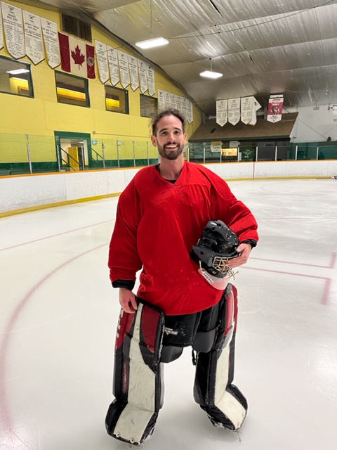 Ben’s second time donning the skates went much better. After a couple old-timers assisted Ben in getting on all the goalie equipment, he was ready to hit the ice. When Ben was asked if the experience offered any surprises, he said, “When you fall, it hurts.” “The group was so much faster than I expected.” That comment made the 55–79-year-old players feel good, but it was quickly pointed out to him that 20-year-old players would be much, much faster.