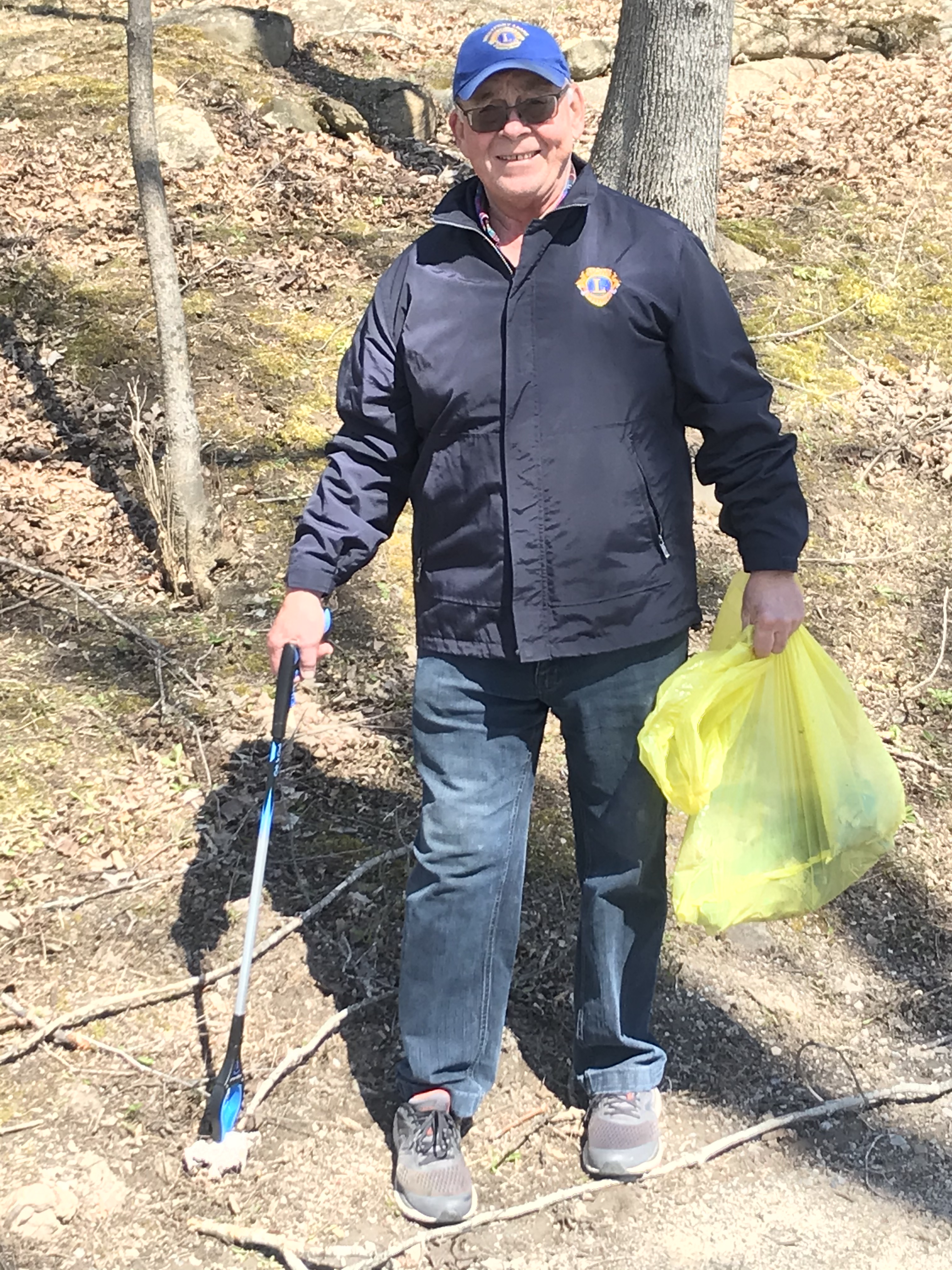 Lion Dave Blair gets an early start is gathering litter from area roads.