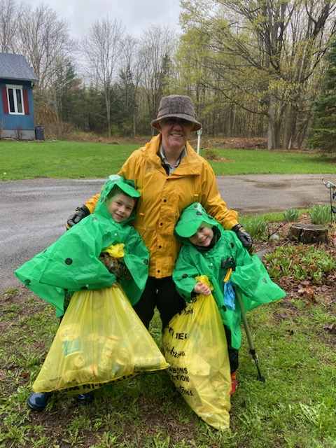 Two of the youngest participants in the Westport Lions Pitch-In initiative were Brayden age six, and his brother Callen Lynch age three. Together with their mother Devon Lynch and their grandmother Cait Maloney, they had a family outing picking up litter along local roads.