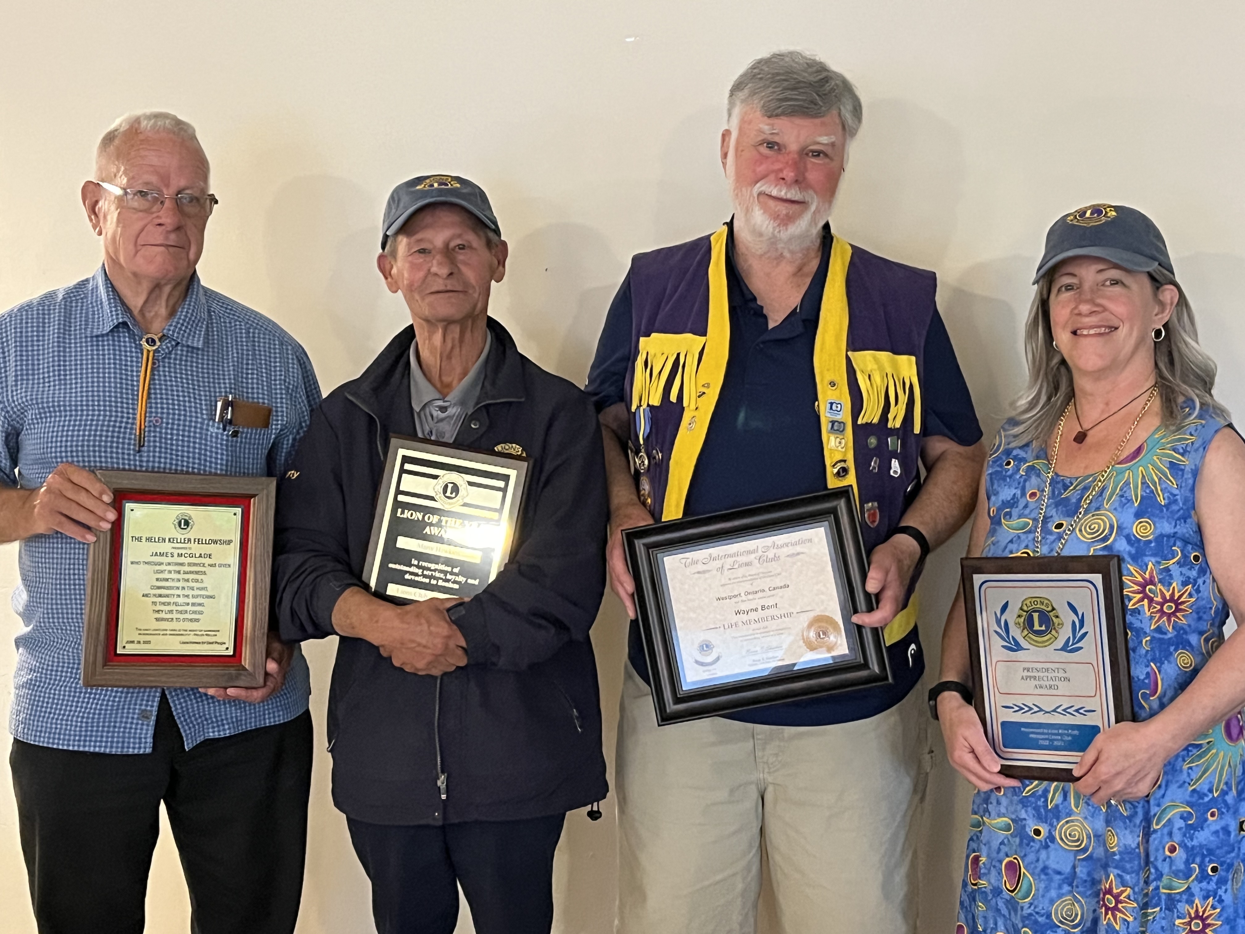 Award winners for the Lions’ year of 2022-23. From left, Lions Jim McGlade, Marty Hawkins, Wayne Bent and Kim Kelly.