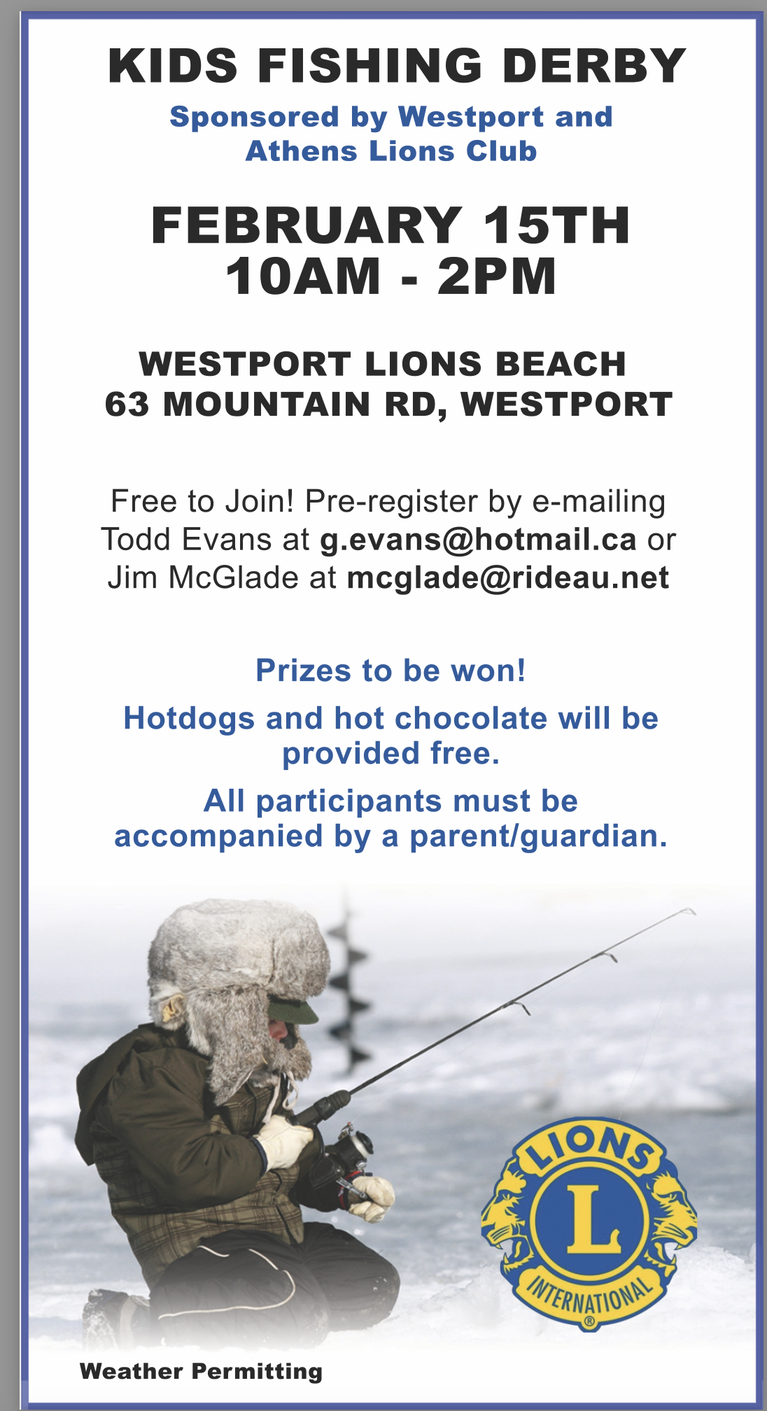 Kids Fishing Derby – Sponsored by Westport & Athens Lions Clubs Posted on January 30, 2025 by breddick Share this: Share on X (Opens in new window) X Share on Facebook (Opens in new window) Facebook Like Loading... Related