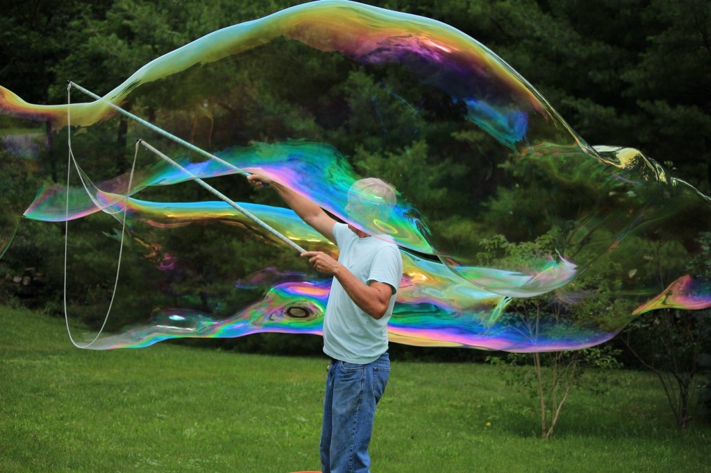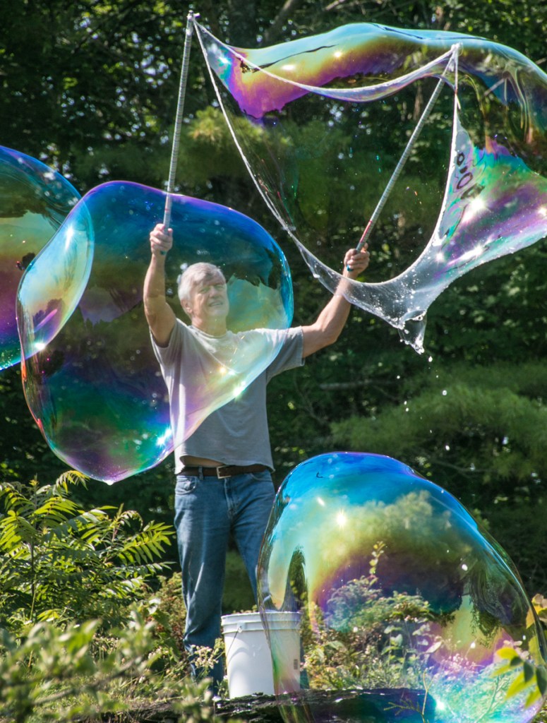 Victor Limbeek, known as The Bubble Guy will be at the Lions’ Beach to entertain young and old alike with his amazing, joyful bubbles. Bubble making for Victor started seven years ago when he and his wife were visiting two chemist friends in Kentucky. One day, the two chemists decided to entertain themselves by trying to create giant bubbles. They experimented with various techniques and soap solutions, and under perfect conditions, they once managed to create a bubble that was 60 feet long. The friends shared the recipe for the soap solution and the techniques with Victor. Making these bubbles involves much more than simply pouring dish soap into a bucket and using some string. Victor practised in his backyard near Mallorytown and eventually graduated to performing at the Block House in Brockville and other charity events attended by children.