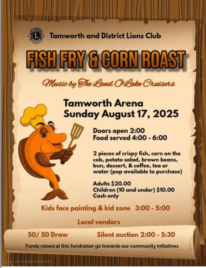 Fish Fry- Tamworth Lions Posted on July 20, 2025 by breddick Share this: Click to share on X (Opens in new window) X Click to share on Facebook (Opens in new window) Facebook Like Loading... Related