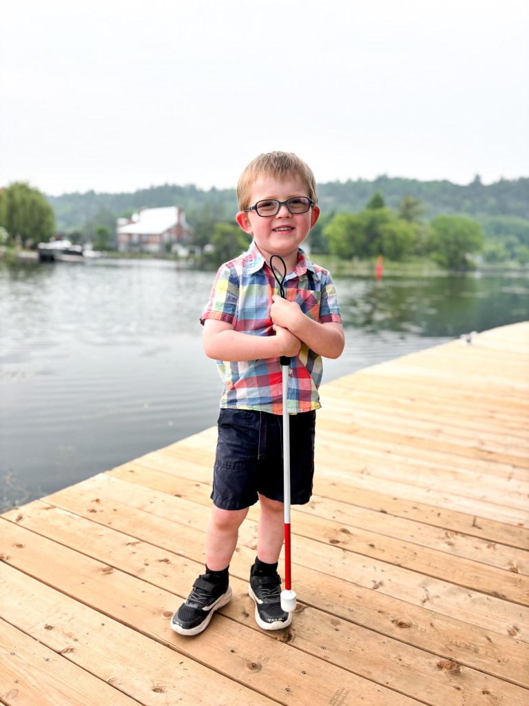 Following our first CHEO visit, I reached out to CNIB to learn how I could best support Harvey in meeting milestones alongside Archie. Through their early intervention program with Vision Loss Rehabilitation Canada, we were able to self-refer Harvey to low vision services. Almost immediately, he had a full team around him: a vision specialist, occupational therapist, speech pathologist, social worker, and mobility specialist. This support has been truly life-changing—not only helping Harvey thrive, but also giving our entire family the tools and knowledge to understand his condition and embrace the different ways he experiences the world.