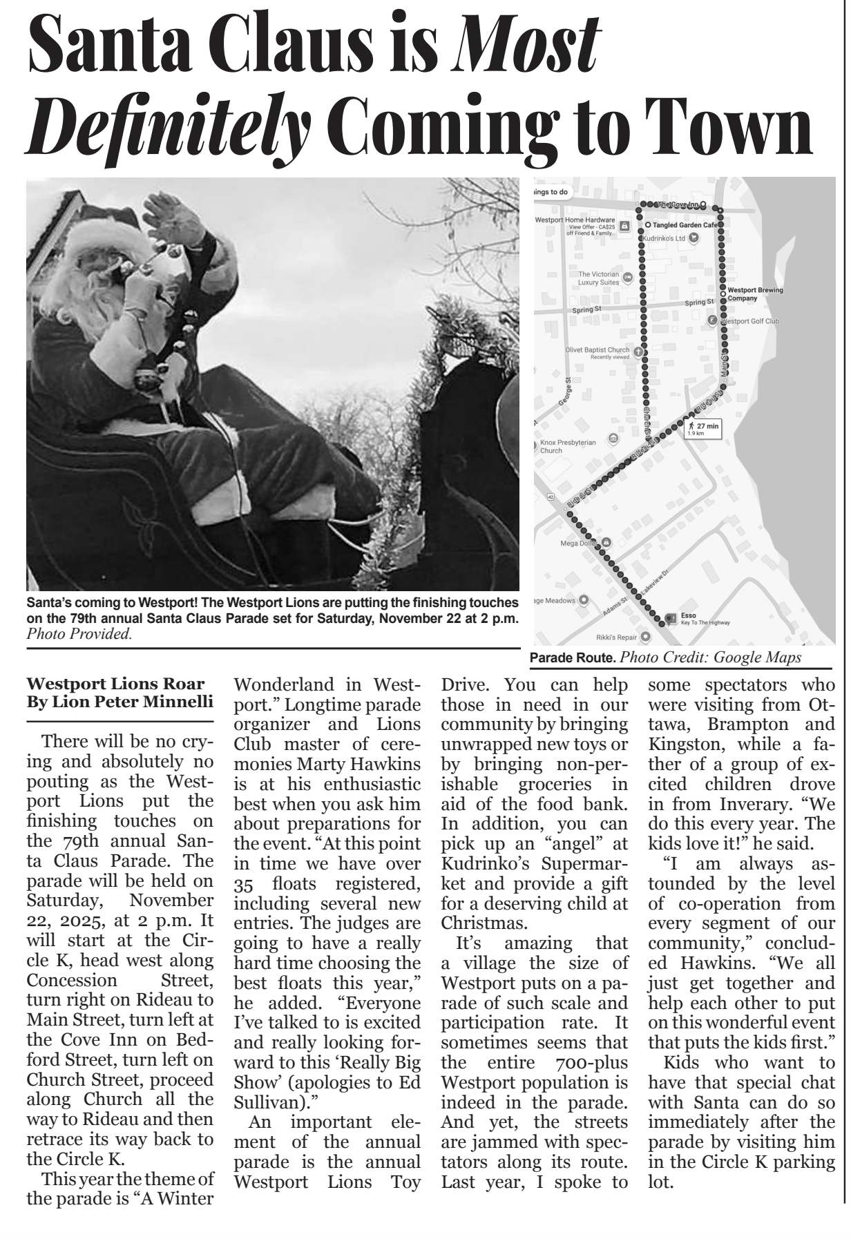 Santa Claus will be in Westport on Nov. 22 Posted on November 22, 2025 by breddick Share this: Click to share on X (Opens in new window) X Click to share on Facebook (Opens in new window) Facebook Like Loading... Related