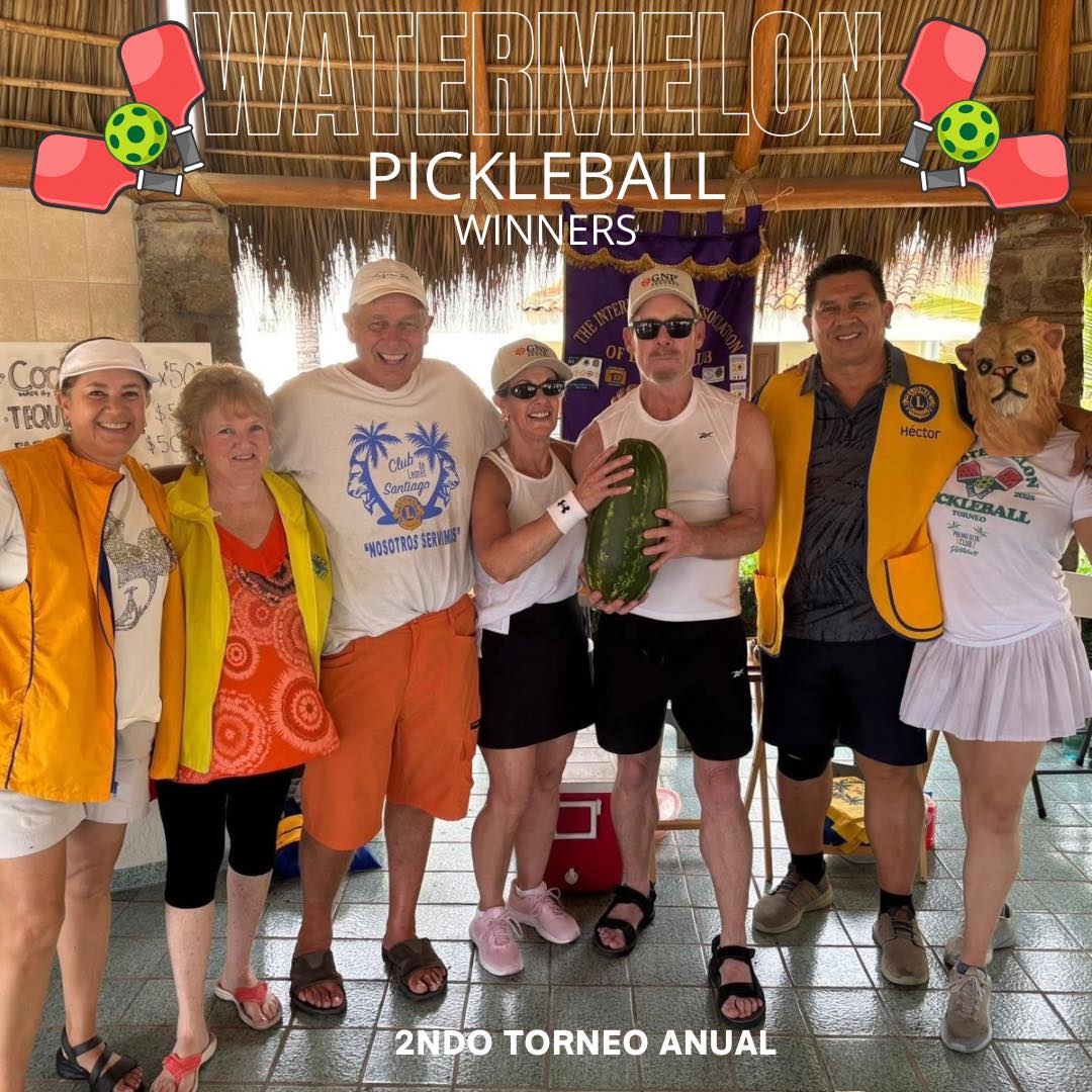 Westport resident Ron Brus, third from the left, celebrates with winners of Santiago Lions Second Annual Watermelon pickleball tournament held in in, Mexico. Ron has organized and participated in several pickleball tournaments to raise money for local Lion initiatives.